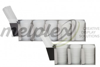 Nadstawka na akcesoria - pokrywki, cukier, patyczki itd. Wykonana ze stali nierdzewnej i plastiku.